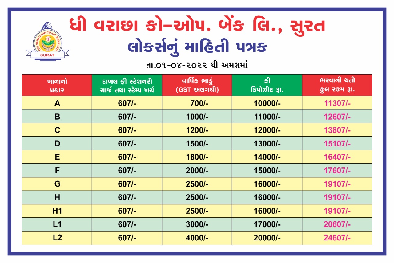 Varachha Bank having Locker facility.